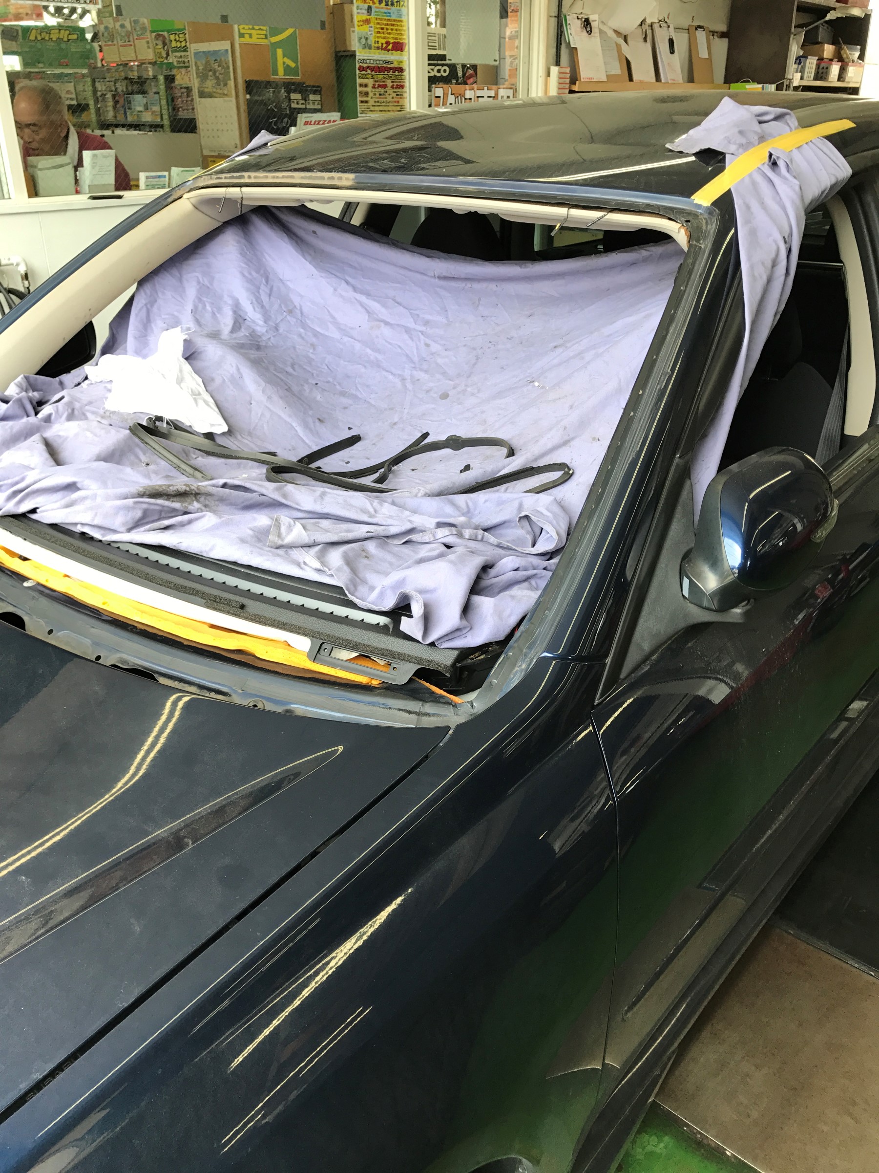 自動車ガラス交換 マツダ アクセラ フロントガラス交換 輸入ガラス 施工で入庫 自動車ガラス名古屋 Com